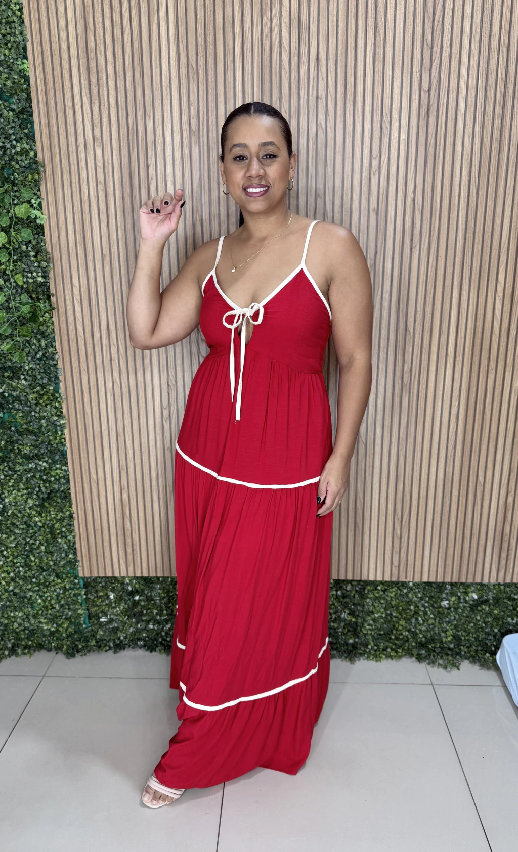Vestido tecido marrant com lastex na parte de tras amarração na frente,forrado.